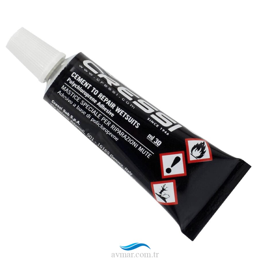 Cressi Special Cement Neopren Yapıştırıcı Islak/Kuru dalış elbiselerinin onarımı için 30 gr kontak yapıştırıcıdır. Neopren yırtıkların ve yırtılmaların hızlı onarımı için uygundur. Özellikle kauçuğun doğrudan birbirine bağlandığı Neopren uç uca ek yerleri veya kenarları için uygundur.