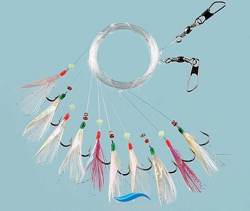 Gümüş iğne, 0.40 beden, 0.30 köstek, simli, 10 köstekli istavrit çapari