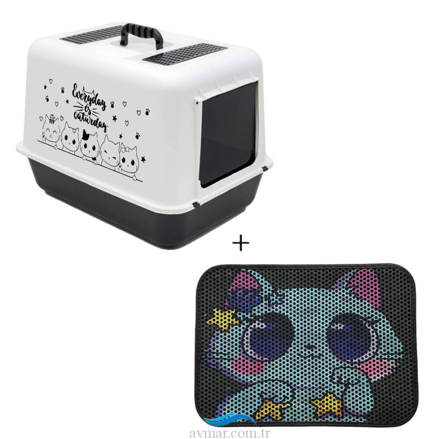 Lüx Kapalı Kedi Tuvaleti Desenli Kedi Tuvaleti Önü Paspası Model 4