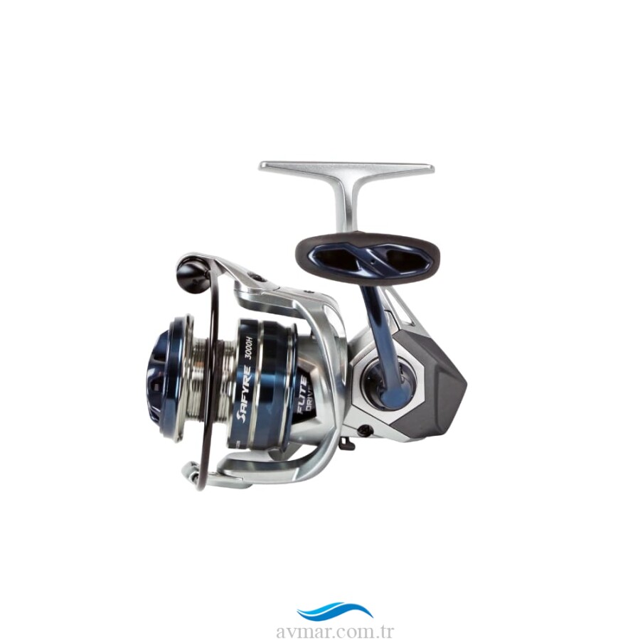 Sert işlenmiş alüminyum sap, sağlam ve sallantısız bir geri alma için doğrudan gövdeye vidalanır. İki tonlu anodize makarası dayanıklılık ve temiz bir görünüm ekler. Safyre, 1000'den 5000'e kadar boyutlarda mevcuttur ve belirli boyutlarda yüksek hızlı seçenekler sunar.