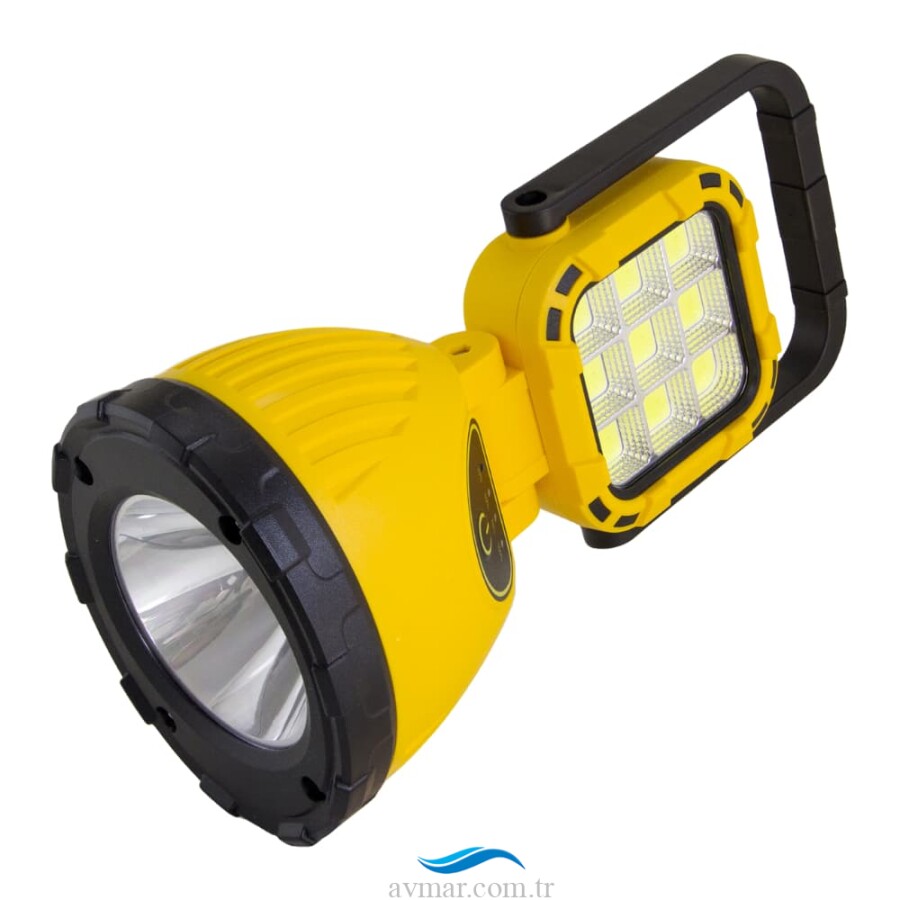 Aç/Kapa düğmesine basıldığında, önce 3W ön LED aktif olur ve sırasıyla çok ışık, orta seviye ışık ve flaşör modlarında yanar. Sonrasında 9 COB LED aynı modlarda yanmaya başlar. Gövdenin 180° ayarlanabilir olması sayesinde COB LED’in aydınlattığı alanı dilediğiniz gibi ayarlayabilirsiniz.