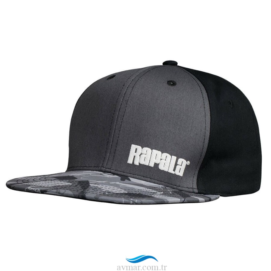 Rapala’nın kamuflaj desenli düz balıkçı şapkası lure camo flat brım snapback modelidir.
