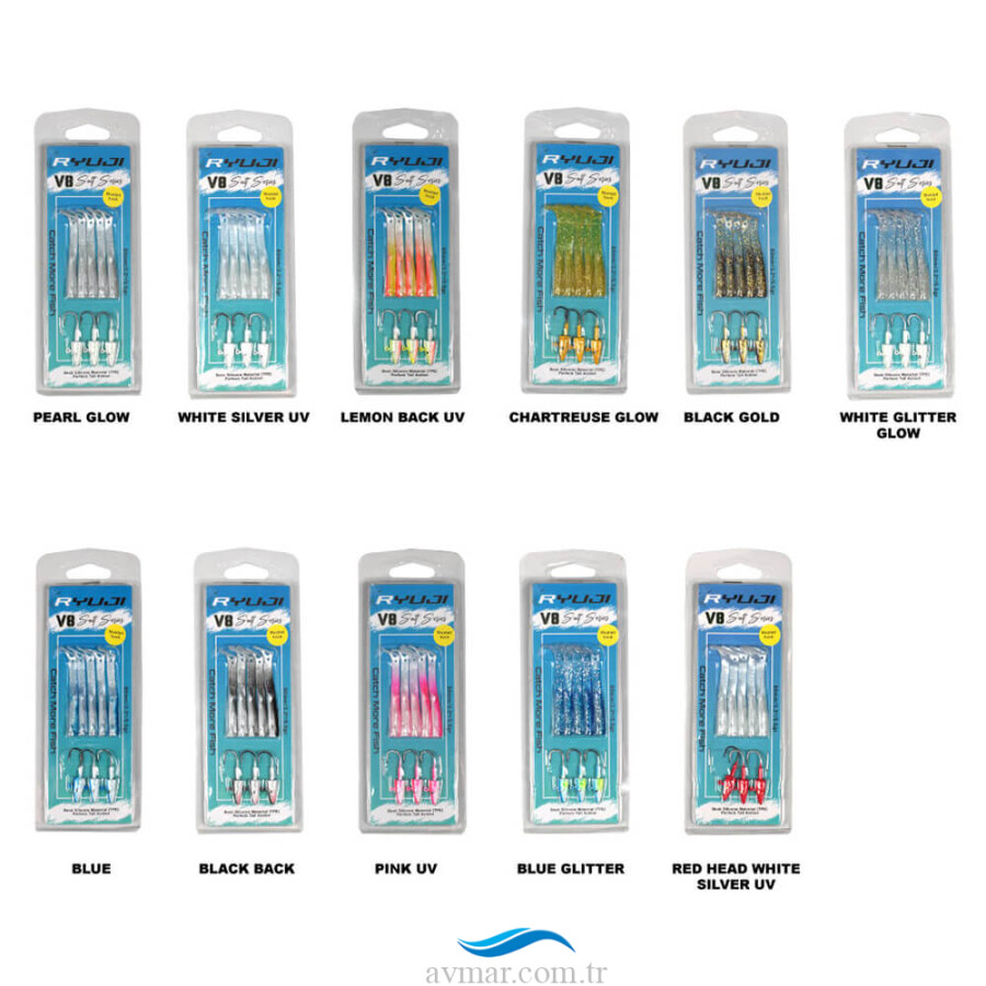 Ürün Kodu Renk Uzunluk (cm) Ağırlık (gr) RYJV8-PG PEARL GLOW 8cm 5.5gr RYJV8-LB LEMON BACK UV 8cm 5.5gr RYJV8-BLG BLACK GOLD 8cm 5.5gr RYJV8-BG BLUE GLITTER 8cm 5.5gr RYJV8-WGG WHITE GLITTER GLOW 8cm 5.5gr RYJV8-WS WHITE SILVER 8cm 5.5gr RYJV8-RHWS RED HEAD WHITE SILVER 8cm 5.5gr RYJV8-PUV PINK UV 8cm 5.5gr RYJV8-CHG CHARTREUSE GLOW 8cm 5.5gr RYJV8-BB BLACK BACK 8cm 5.5gr RYJV8-B BLUE 8cm 5.5gr