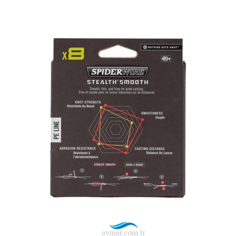 SpiderWire Stealth Smooth x8 örgü ip; güç, hassasiyet veya çaptan ödün vermeden pürüzsüz ve yumuşak bir his sunar. Stealth Smooth x8, sessiz atışlar için ideal olan sıkı ve yuvarlak bir ip oluşturmak için 8 PE ipten sıkıca dokunmuştur.