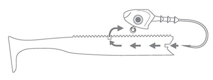 Gövde üzerinde belirtilen giriş ve çıkış delikleri sayesinde jig kafanın takılması çok kolaydır.