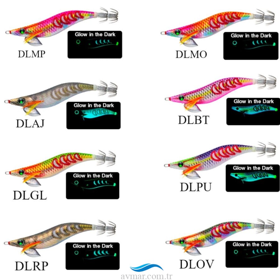 Yo-Zuri Aurie-Q Search Double Glow, çift aydınlatmalı gövdeye sahip ilk kalamar sahtesidir. Yo-Zuri iki farklı dalga boyunda ışık yayan bir gövde tasarladı. Yeşil renk 520 nm dalga boyunda yayılırken mavi renk 488 nm dalga boyunda yayılır. Bu özellik olta balıkçısının kalamar sahtesini şarj ederken farklı UV ışıklarını denemesine ve farklı bir sonuç elde etmesine olanak tanır.