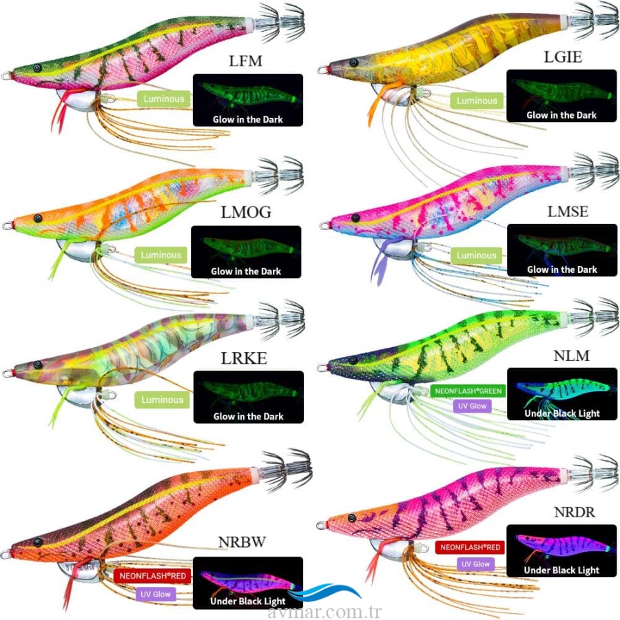 NLM ve NRDR renklerinde bulunan NeonFlash özelliği, gövdenin ışıltısı, bulutlu günlerde veya UV ışınlarının zor ulaştığı bulanık sularda bile çekici olur.